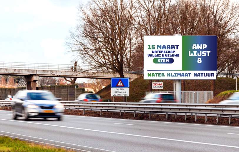 In de tien dagen voorafgaand aan de verkiezingen zal de AWP prominent zichtbaar zijn langs de snelweg.