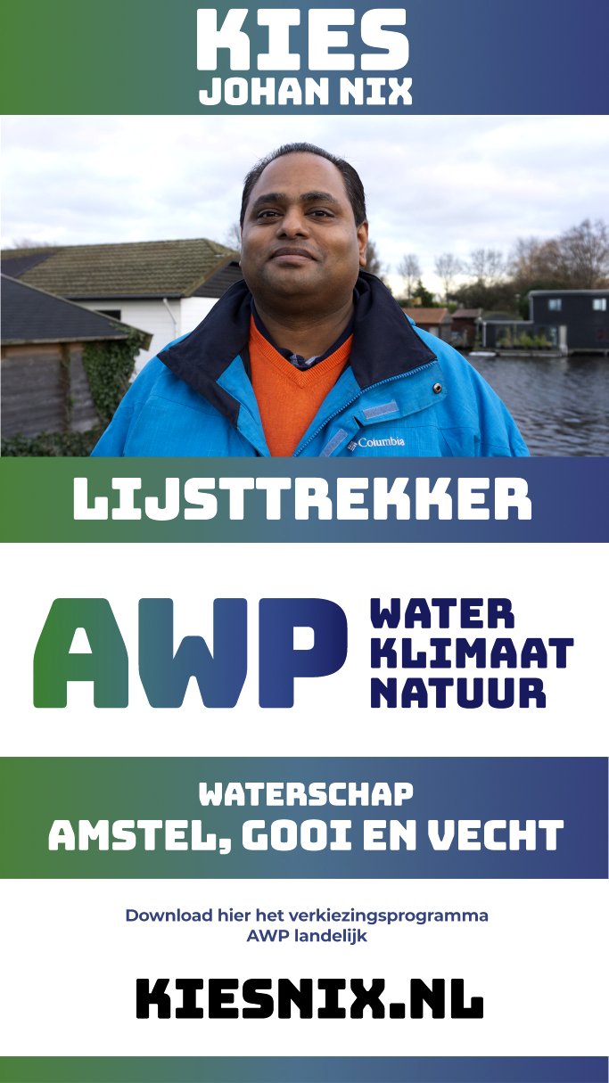 “Want Nix doen is geen optie!”, zegt Johan Nix, lijsttrekker voor de AWP in Amstel, Gooi en Vecht.