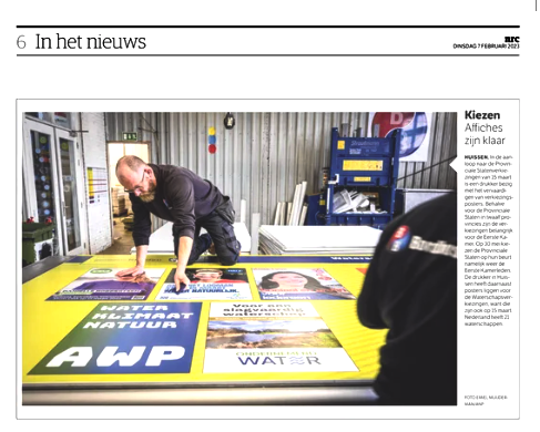 De affiches zijn klaar! Met de poster van de AWP prominent in beeld in de NRC.