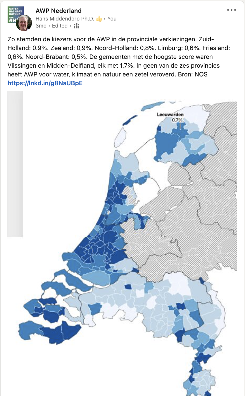 De AWP heeft met veel inzet en enthousiasme meegedaan aan de waterschapsverkiezingen en de provinciale verkiezingen. Gezien de enorme overmacht van de BBB heeft de AWP de schade nog weten te beperken.