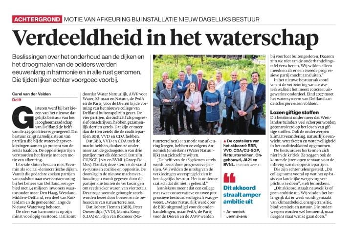 Delfland: progressieve partijen voelen zich buitenspel gezet (bron: AD 2 juni 2023)