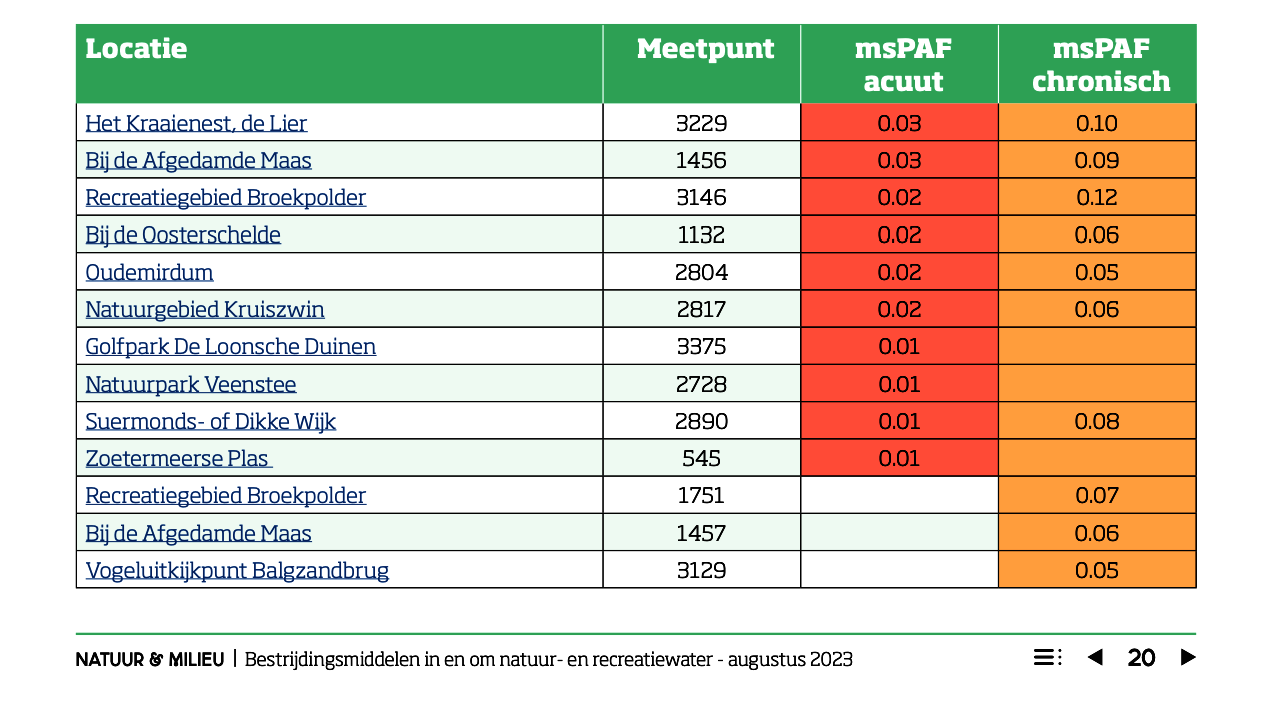 Top tien natuurgebieden vervuild met bestrijdingsmiddelen (Rapport Centrum Milieukunde Leiden in opdracht van Natuur en Milieu)