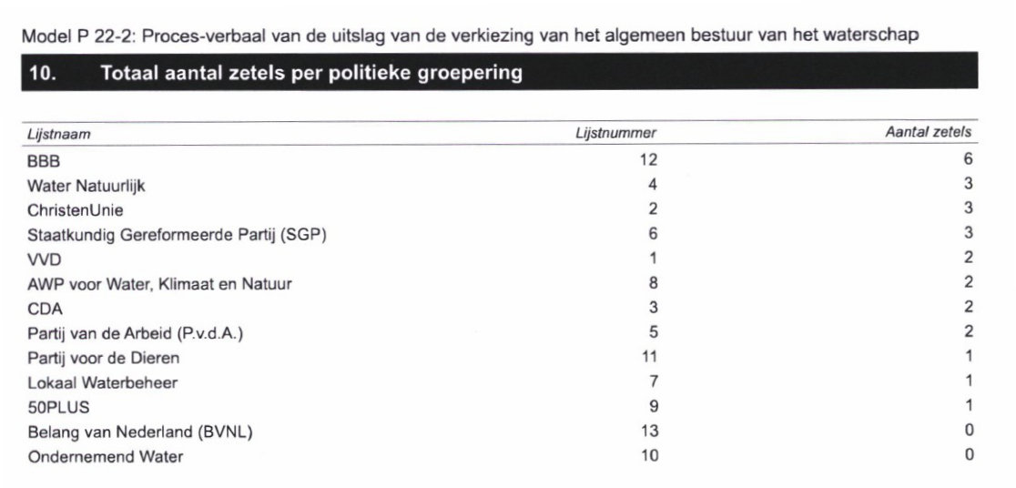 AWP voor Water, Klimaat en Natuur is in dit waterschap de enige andere partij die flink meer stemmen behaalde dan in 2019.