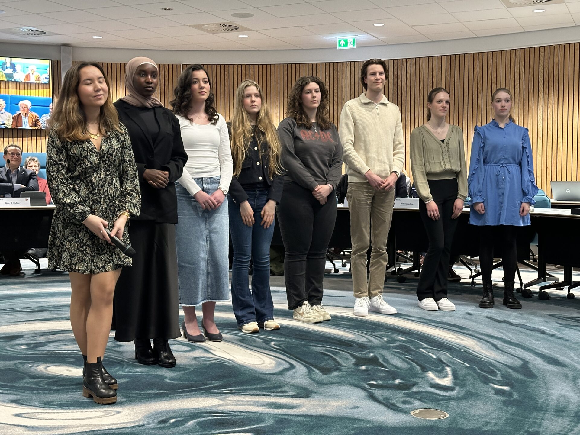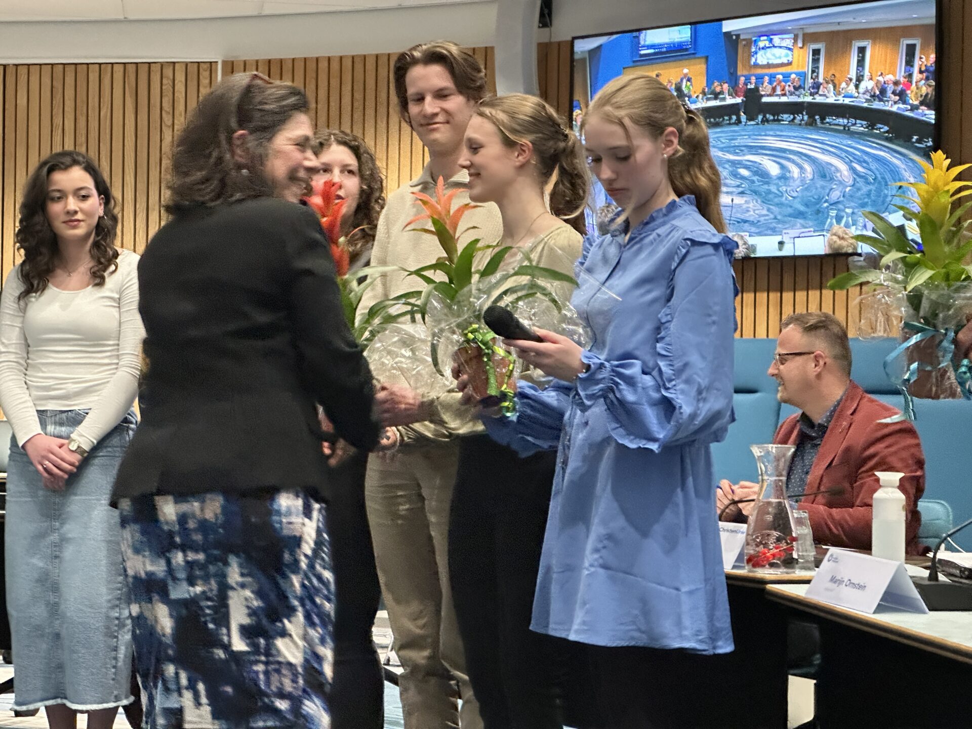 Wie weet, maar voor nu is dat jullie je best gaan doen voor de zaken die ik straks ga opnoemen en ik wil jullie graag uitnodigen om net als het gaat bij de AB- en de commissieleden om binnen in de ring plaats te nemen, zodat ik de tekst aan jullie kan voorlezen.